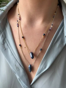 Naszyjnik KIMI z lapis lazuli i cytrynem to doskonały wybór na prezent dla kobiety sukcesu, artystki lub bliskiej osoby, której chcesz życzyć powodzenia w nowych przedsięwzięciach. Biżuterię otrzymasz w eleganckim pudełku jubilerskim Lazuri, gotową do wręczenia.